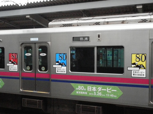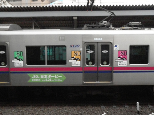 新宿の駅階段もダービー一色で、京王ってそんな競馬びいきだったっけ・・・?(まあ競艇よりは)