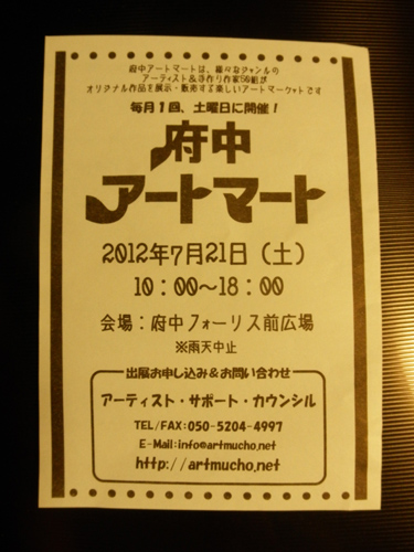 ちなみに、その次の日の土曜はアートマートなので、雑貨やアクセサリー、コケ玉(←?)なんかをお探しの方はどうぞこちらも。