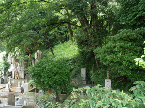 がけの下には、お寺さんと墓地がかなりの範囲で広がっていました。