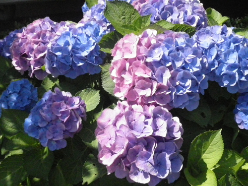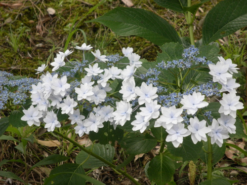 今年のあじさいは、なぜか二色が混ざったグラデーション・・・。
