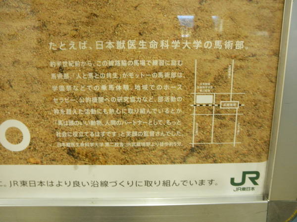 武蔵境駅のそばに日本獣医大馬術部の馬場があるそうです。