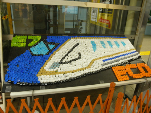 エコキャップアートが目を引く。キャップの色がばっちりです。
