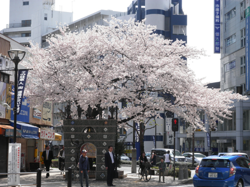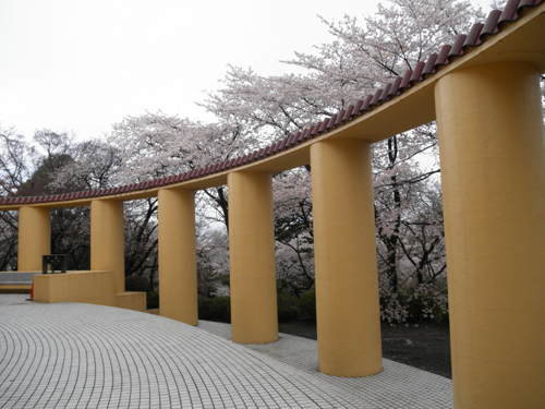 正面から。よりは建物から見た時の桜の景色の方がすばらしい。