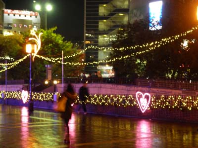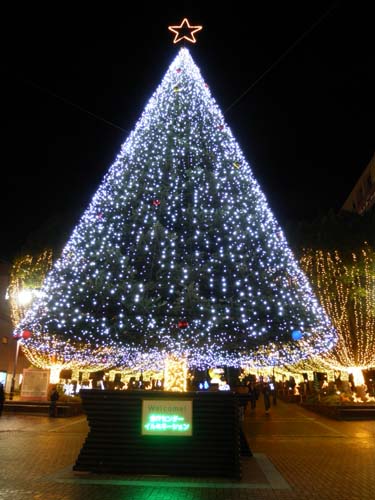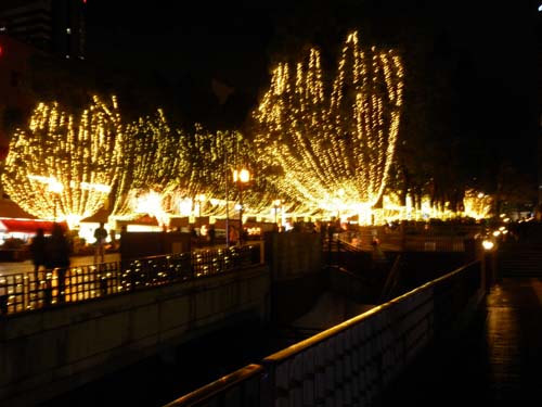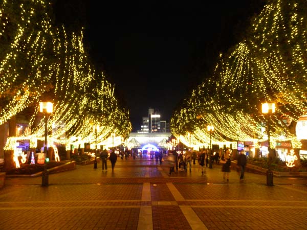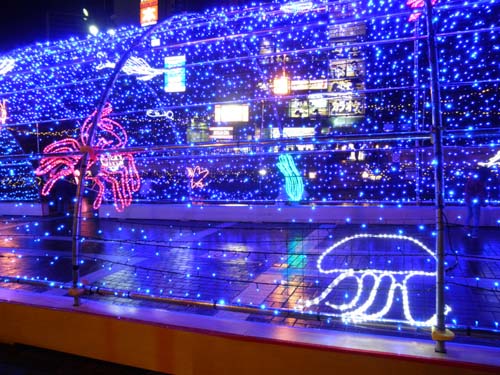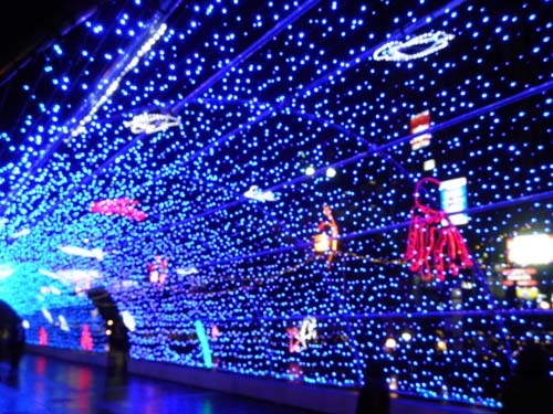 こちらは駅前にしつらえられた青いLEDトンネル。