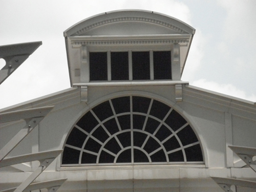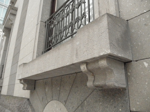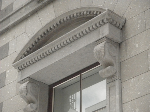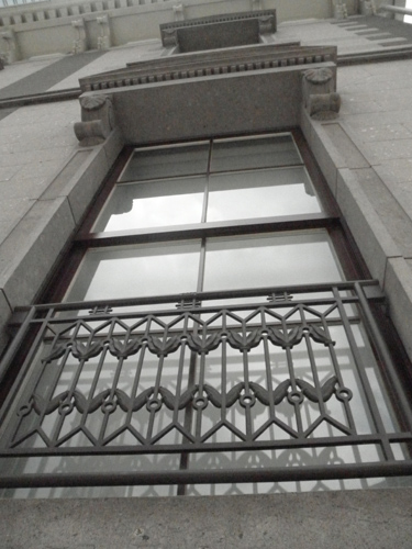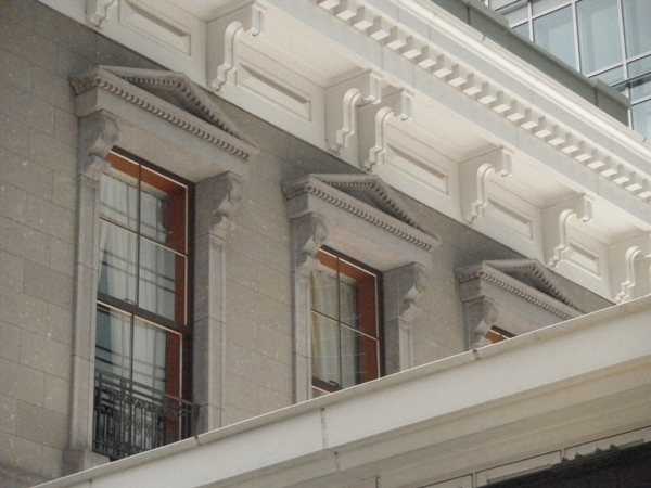 あとは、窓のうえのでっぱりが、一階は半円形で、二階は三角形だった。