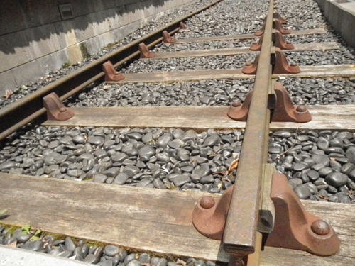 ホーム上の地面は砂利敷きで、中央に排水溝設備があったらしい。ハイテク!(?)