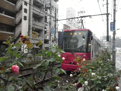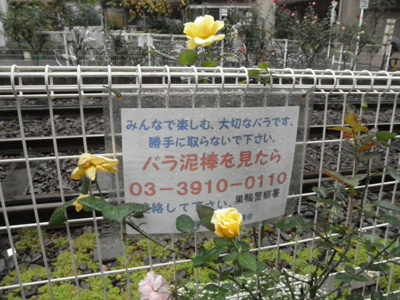 で、ここから三ノ輪方面を待とうとしたら、地域の人が協力して沿道のバラを守っているという、ポスター。そのバラの見頃が今月までだというので、向原までひと駅歩いてみようという気に。