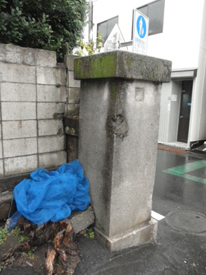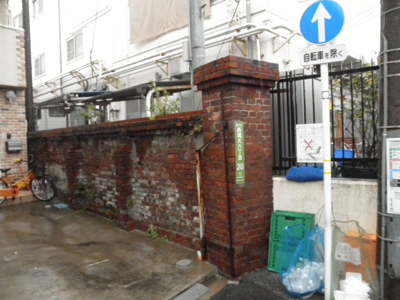 で、肝心の煉瓦塀はどこだ~と周りを見渡した所、あやしい門柱を発見。