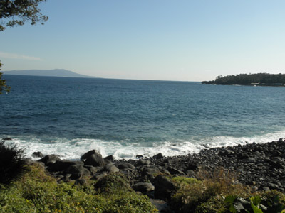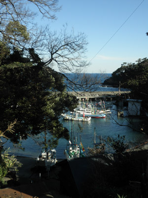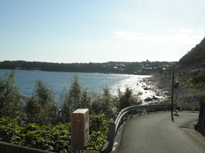 富戸駅は山の上にあり、城ヶ崎までは海岸沿いの道を少し行くので