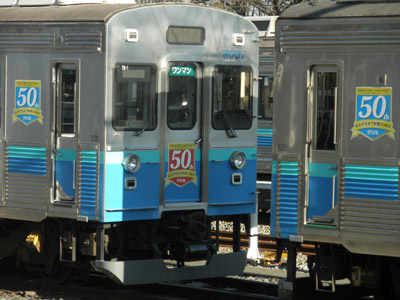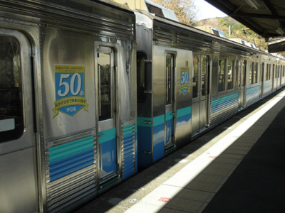 熱海方面の電車が先にきました。50周年ステッカー車です。