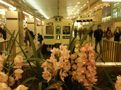 終着ホームに花が植わってて、狙った演出だろうか・・・?と、またまた少し感動。