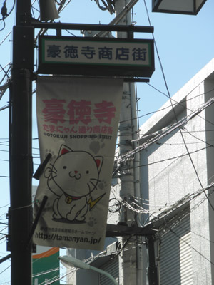 豪徳寺の招き猫をイメージしたキャラクターと思われるネコが。かわいい。