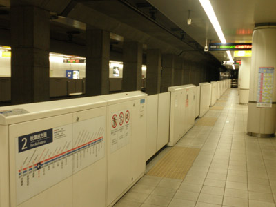 地下駅です。新しいからかきれいだな~とおもっていたら、掃除のおじさんが一生懸命柱を磨いていました。日々のお手入れが大事なのですね。あと、お客さんあんまいな(ry