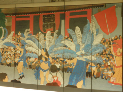 浅草着。したら、TXの浅草駅の壁画が南北の比じゃなくてびびった。