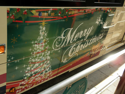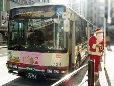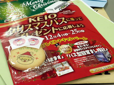 先週から京王バスがクリスマス企画でラッピング車を走らせていて、