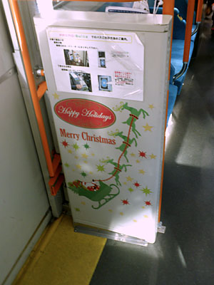 運転手さんもサンタの服着ていて、アナウンスも「京王クリスマスバスにようこそ」とか「今日のサンタさんはいつもより優しいですよ~」とか