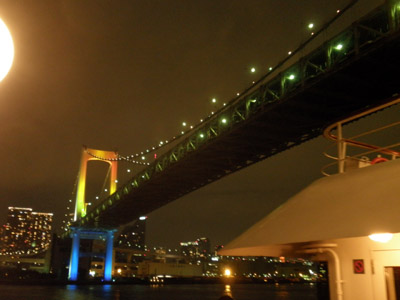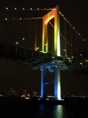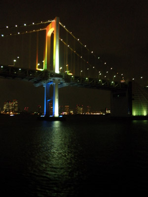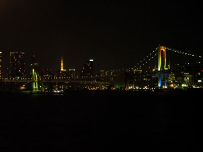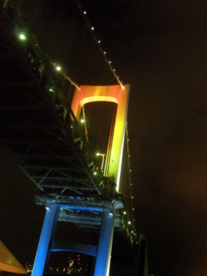 あとは、目玉のレインボーブリッジがほんとうに虹色にライトアップされてて感心したというか。