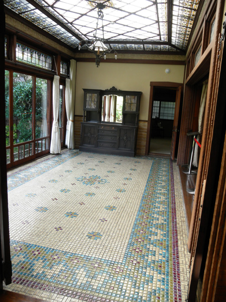 ステンドグラスは当時としても相当高価な珍しいもので、モザイクタイルも