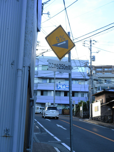 街中ではなかなか見ない標識。多摩の坂なんて生ぬるい、伊豆の坂です。