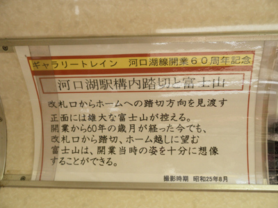 中はギャラリートレインになってました!昭和20年代、河口湖線が開業した頃のがメインなのかな?