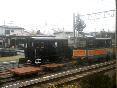下吉田駅で、交換待ち。有蓋車?がかわいい。