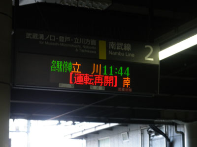 幸いにも、南武線は運転を再開していて、5分の遅れで済んでました。