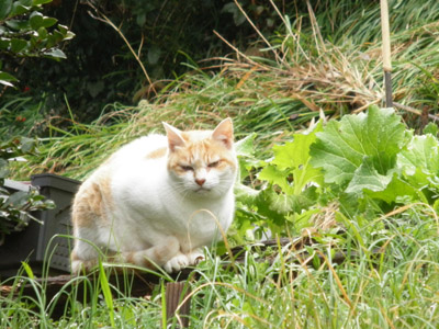 右端は、山畑の畦にじっとしていた猫さん。なんだか畑守のよう。