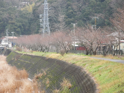 川の土手にも桜並木。種類がちがうのか、まだまだ蕾でした。4月が楽しみな並び。