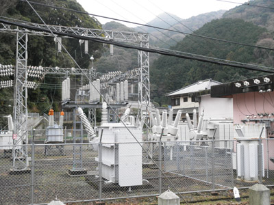 伊豆急のトンネルと、変電所。このあいだに、クイズの立て札があります。