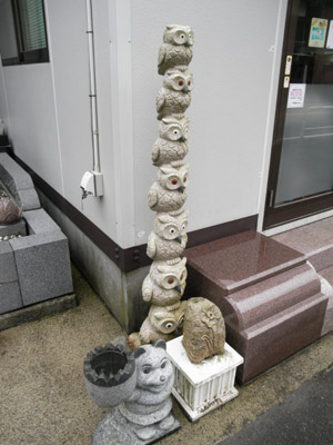 隣のは、なんか石材店さんの玄関前のフクロウが積み過ぎで爆笑。