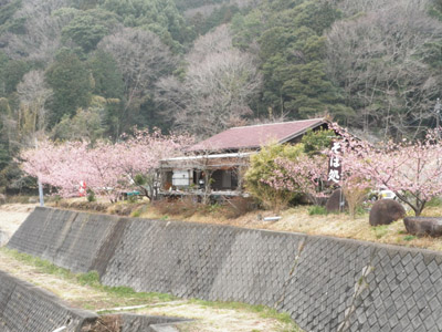 いよいよ河津市街が近づき、道路脇の山のあちこちにも河津桜が植えられています。桃源郷みたい。