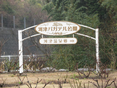 そこを抜け、バラ園バガテルの看板を右へ。はじめ、「バガテルに寄ってみようか~」とかいってたんですけど、下ってる坂をまた上らねばならぬとわかって、大人しく諦めました。
