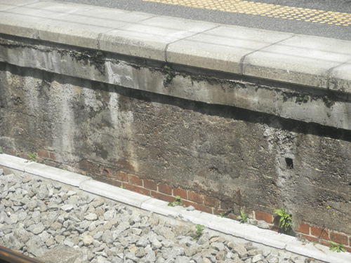 右は、四方津駅のホーム下。ここにも、煉瓦がちょこっと、見えますね。