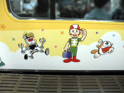 例の黄色い幸せ電車と、リバイバルっ子にHMとられたゼブラも見かけました。