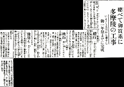 「総べて御質素に多摩陵の工事 いよいよ五月から着手し 御一年祭までに完成」