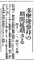 「多摩陵参拝の期間延期さる 四月一、二、四日の三日間」