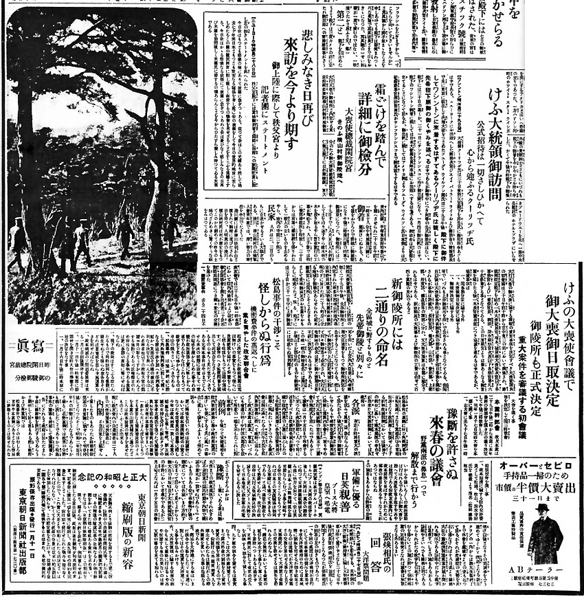 「けふの大喪使会議で御大喪御日決定 御陵所も正式決定 重大案件を審議する初会議」