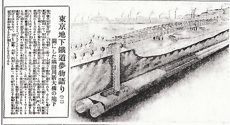 東京地下鉄道夢物語り〔二〕図にした隅田川新大橋の地下 大正十三年八月十四日(木曜日)