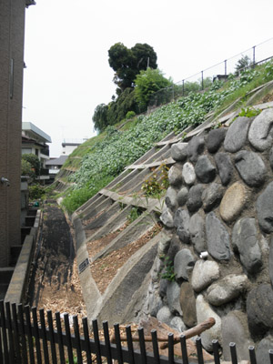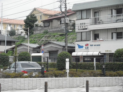 正面にはまた、崖の上に立つ住宅。ここは崖線と崖線の間の幅が狭いみたいですね。