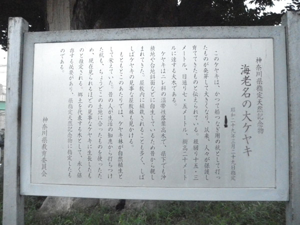 看板の説明によると、ここは船着き場で杭にしていたケヤキが育ったものらしい。