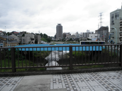 その先は乞田川です。このでかい2車線道路は乞田川の沖積地帯で低地です。