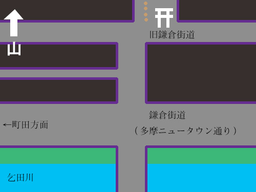 その先で川崎街道と鎌倉街道が交差しています。