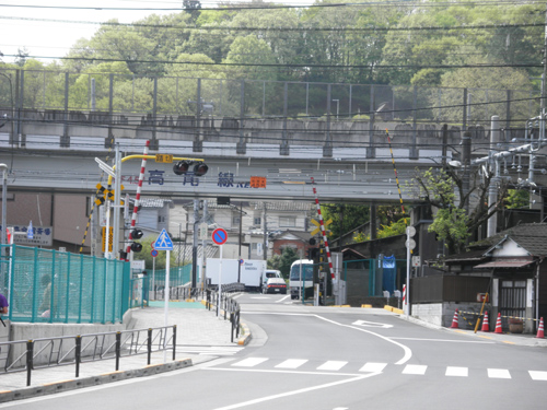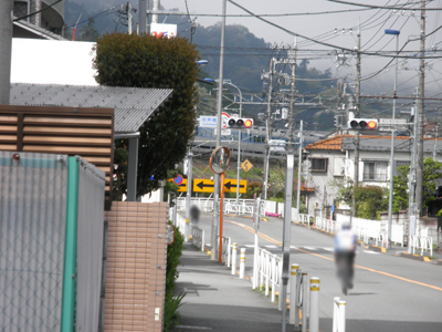 交差点から見た両者の踏切。中央線は地上だけど、京王線は高架です。