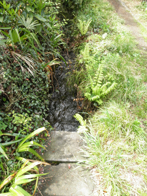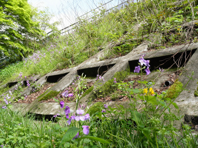 反対側は、残念ながらコンクリです。でも、右側と左側で、コンクリと石積みという違いはあります。なんででしょうね。