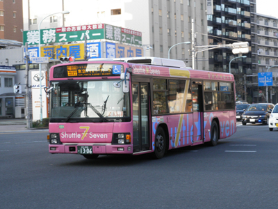 ときどきドピンクのバスがまじってて、アレはなんだ!?と思ったら、