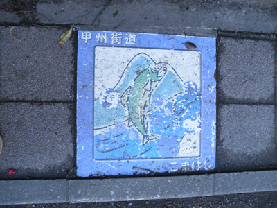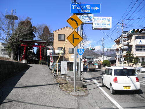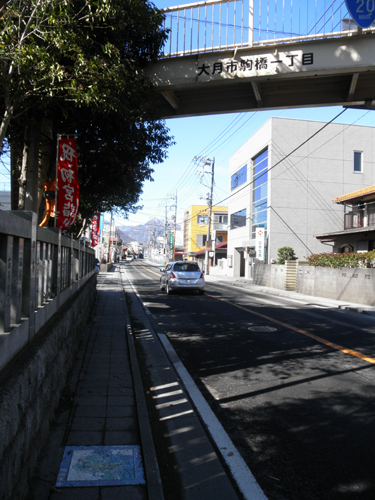 図書館にむかうための道路が、なんと国道20号線(甲州街道)でした。