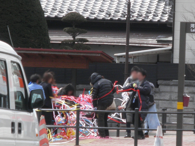 テープのあれをやったらしく、強風にあおられてあちこちからまってエライことに。